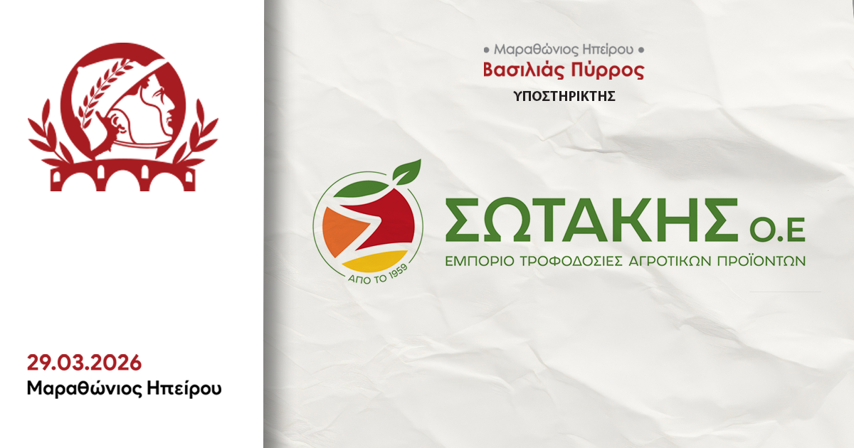 Η εταιρεία ΣΩΤΑΚΗΣ (Εμπόριο & Τροφοδοσία Αγροτικών Προϊόντων) στηρίζει τον 1ο Μαραθώνιο Ηπείρου – Βασιλιάς Πύρρος